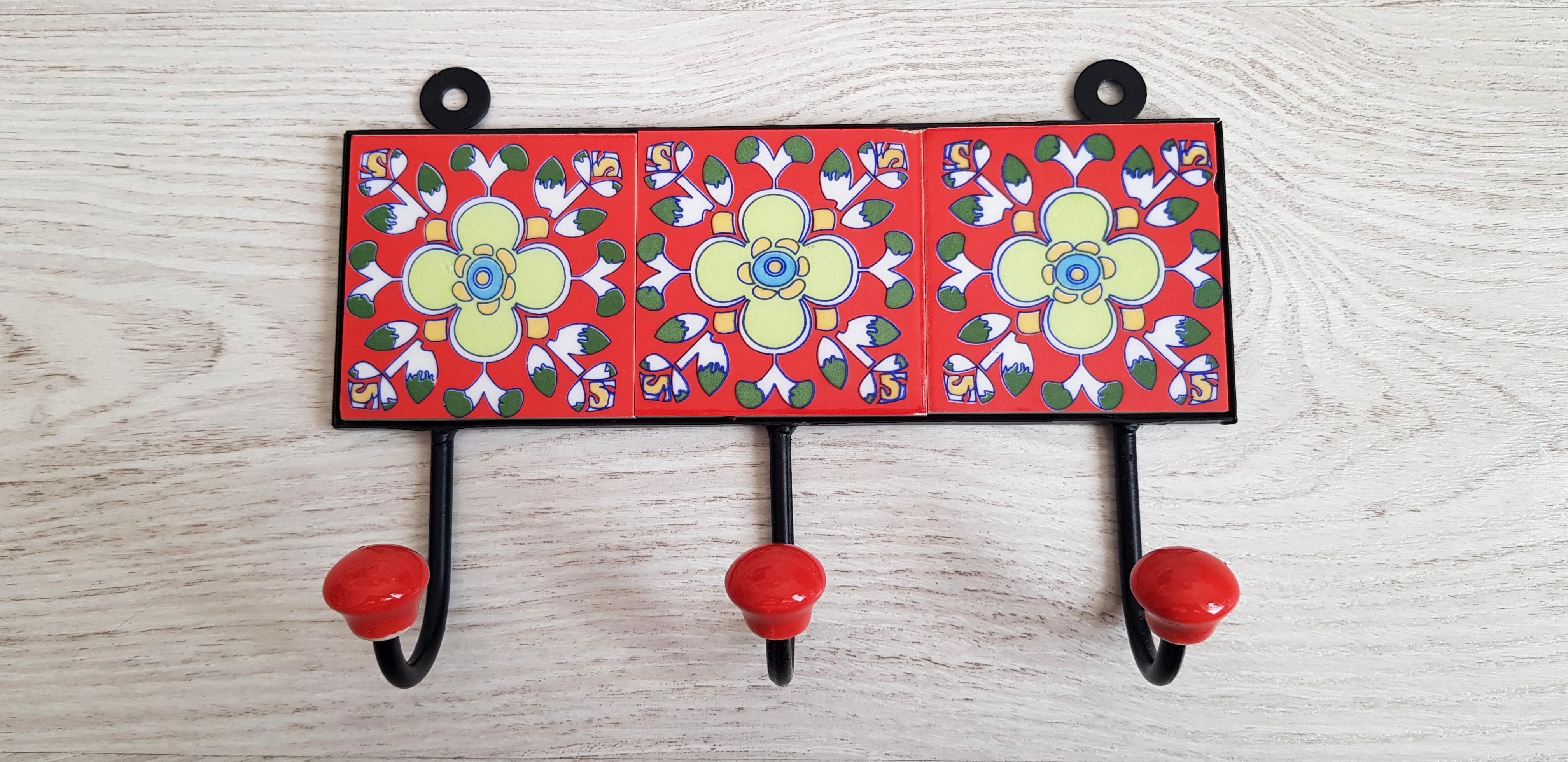 Keramický ručne vyrábaný vešiak s tromi háčikmi