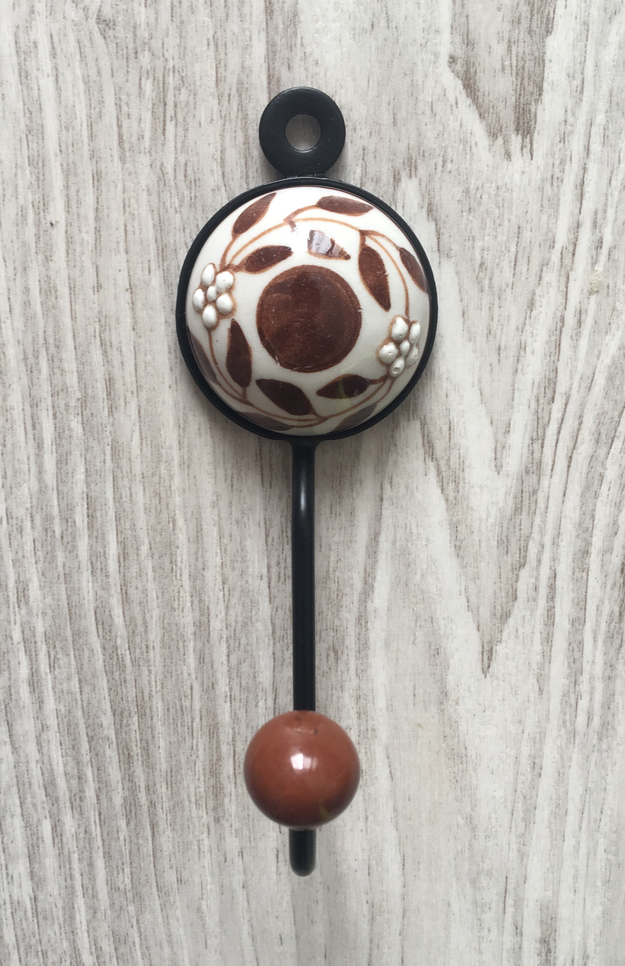 Keramický ručne malovaný vešiak Brown flowers